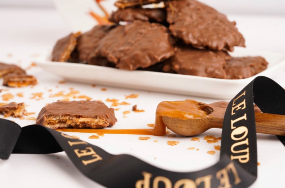 استمتع بتجربة حلا ليلوب علبة شوكولاتة فاخرة طابقين في داخلها حبات من كريب دانتيل محشو بالكراميل مغطى