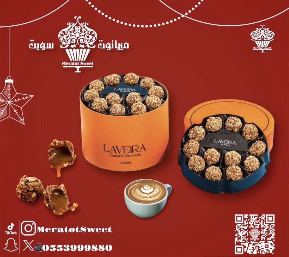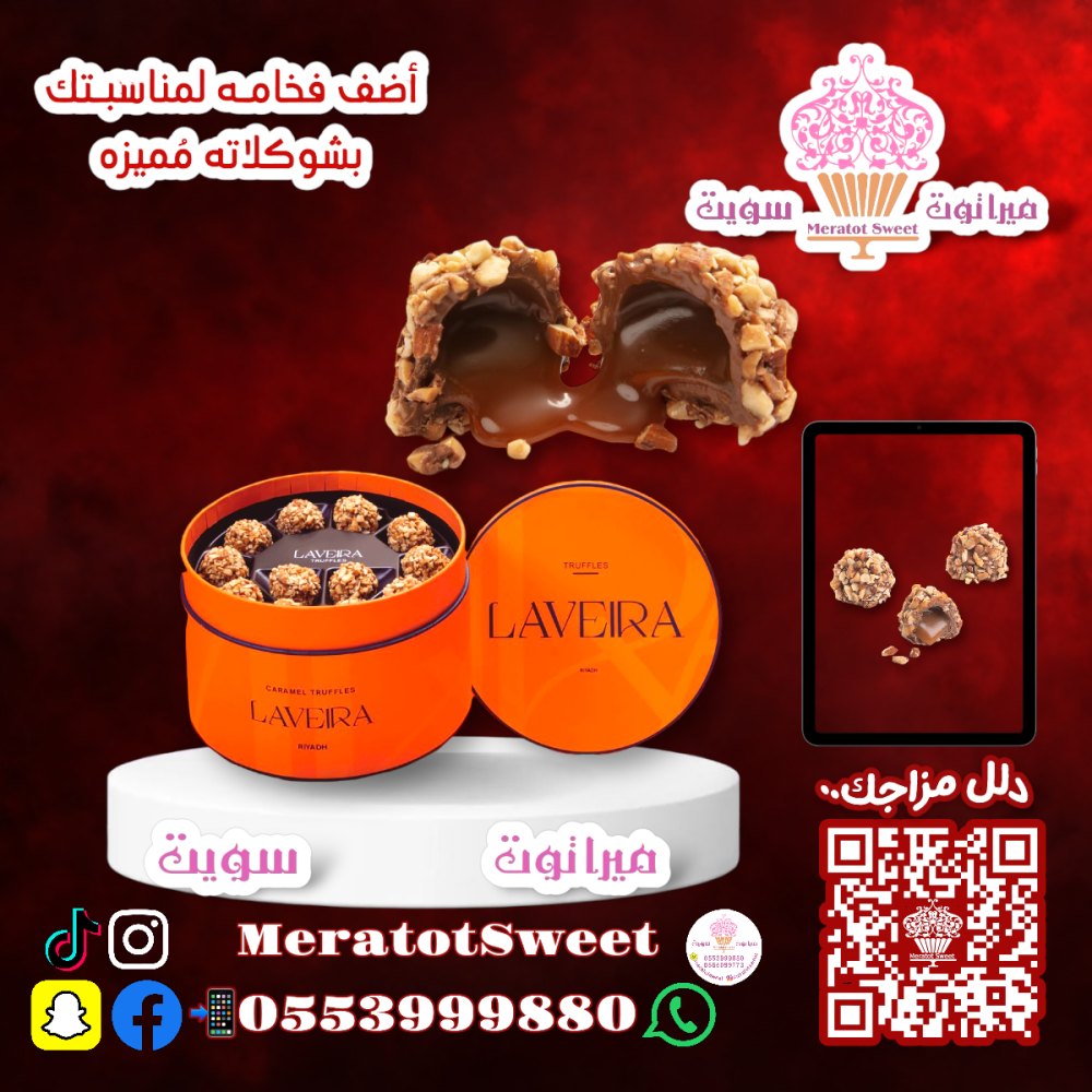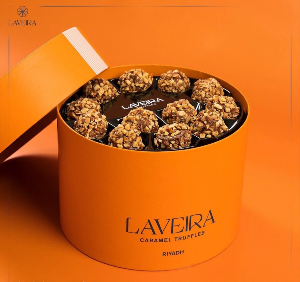 ثلاث طبقات داخل البوكس 36 قطعه من قطع شوكولا الترفل المحشي بالكارميل المصنع من أجود المكونات الخاصه بنا وهو سر تميزها مغطاه بقطع اللوز المحمص بعنايه لمنحك تجربه فريده لاتنسى